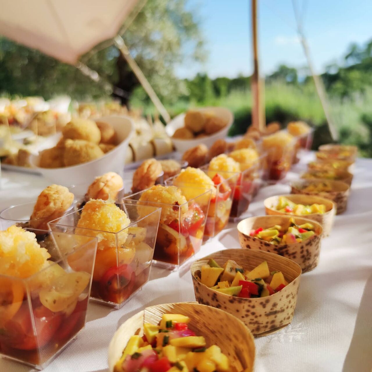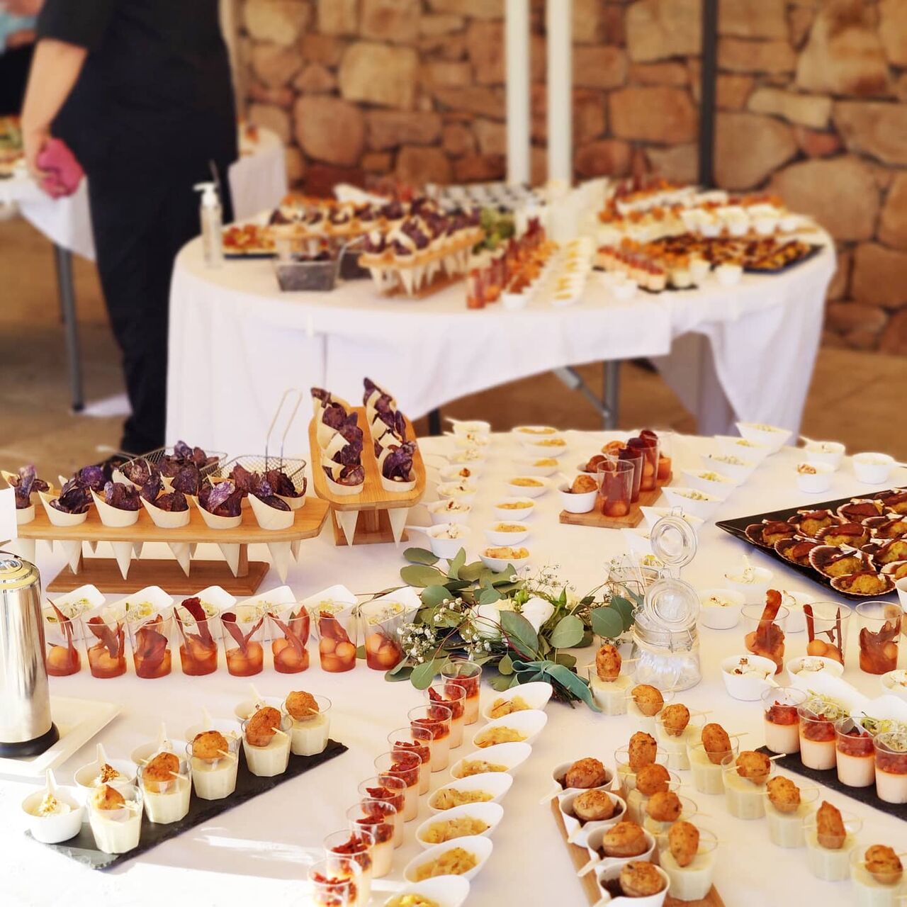 Repas gastronomique réalisé avec des produits de qualité, cuisiné dans les règles de l'art, buffet aux saveurs uniques, où chaque bouchée, verrine, pièce apéritive est cuisinée et dressée individuellement.